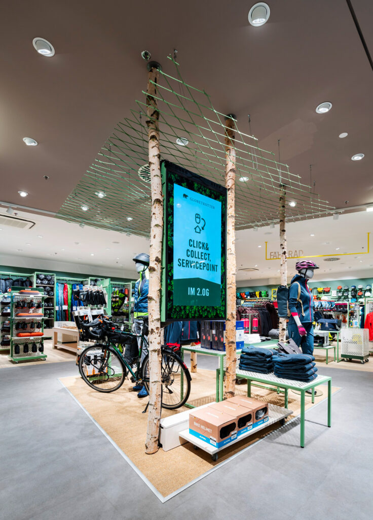 Umdasch Store Maker was commissioned to redesign the 4,000m² sales area in the corner building Schloßstraße / Ahornstraße in Berlin Steglitz as the new flagship store of the outdoor experts.